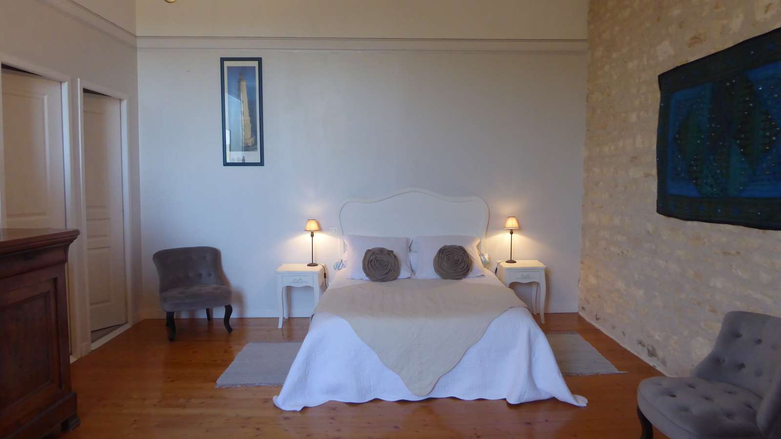 The two bedrooms are located on the first floor of the house. Each has its own shower room and WC. Free wi-fi.