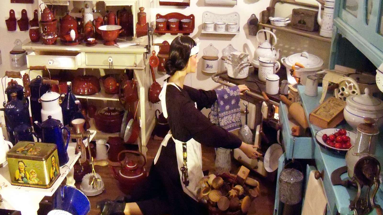 Discover one of the world's largest collections of old culinary objects: enamelled coffee pots, cake moulds, scales, decorated dish racks...