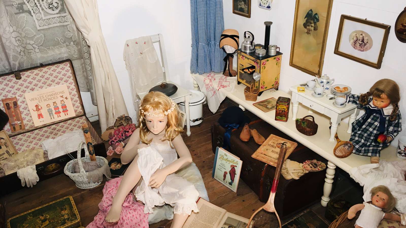 Admire the curiosities, toys, fashions and miniatures. Finish off with the magnificent exhibition of biscuit, chocolate, tea and coffee tins (1880-1930)... Take a trip back to the good old days! Fun for all the family! Visitor games and staging. "Search games