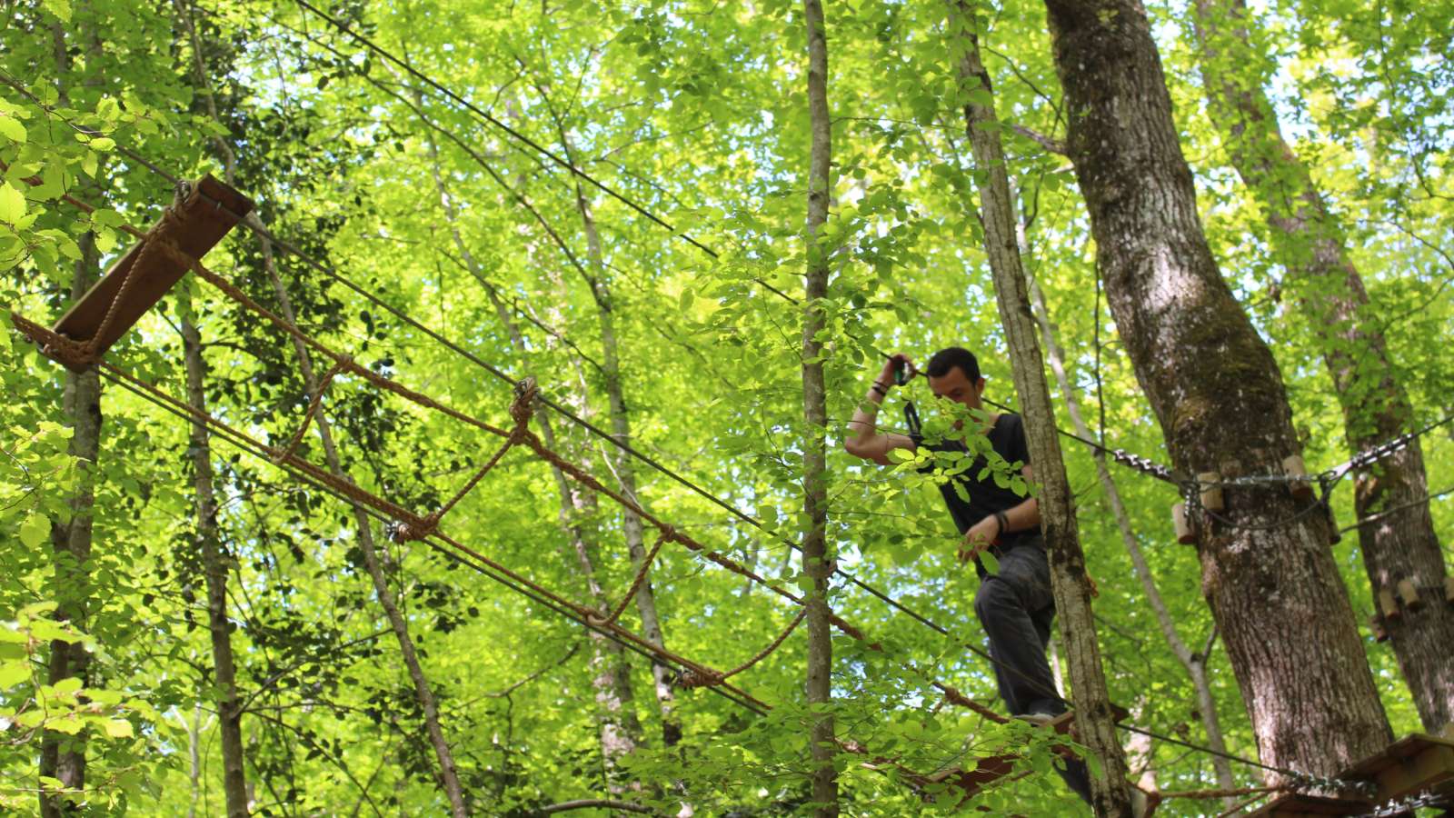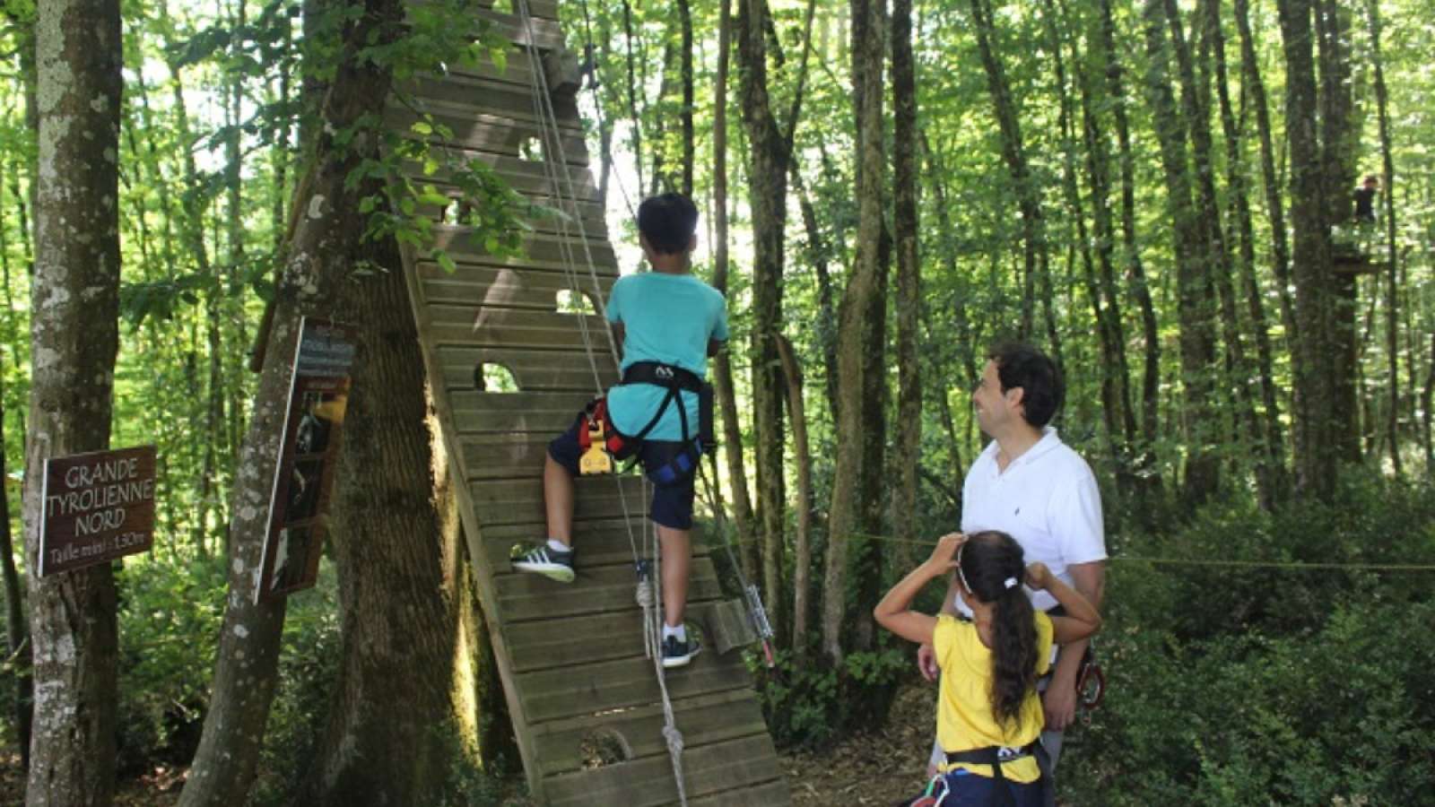 The Fontdouce adventure park offers : • 13 aerial courses, 1 yellow, 1 orange, 1 green, 1 blue, 1 pink, 1 purple, 1 bordeaux, 1 red, 1 black, 3 for children aged from 3 to 8 years old • 2 giant zip lines • 2 net mazes