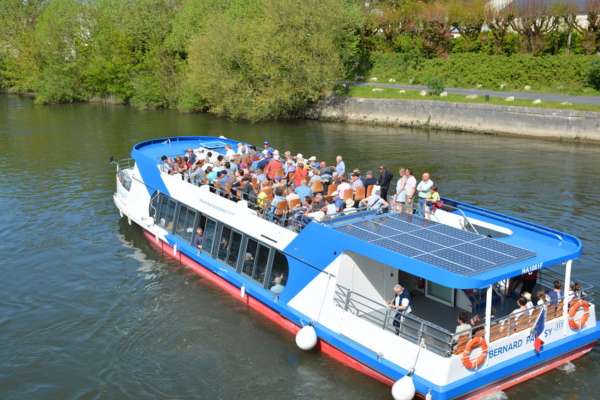 Unique in Europe: electro-solar boat, silent and without CO2 emission. Departure at 10:30 Saintes with stopover lunch (from 12:00 to 14:30) in Chanie...